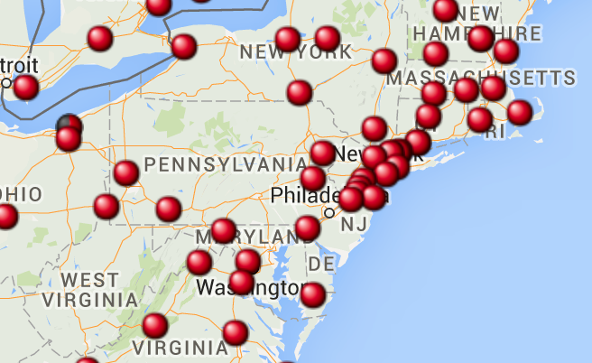 The Metro Statistical Areas of NYC, LA, DC, Philly, Miami, and Boston account for about 56 million people combined. Dallas, Chicago, Houston, and Atlanta are poorly covered and account for 29m. Of the next 10 MSAs on the list (populations in the 3m-4m range), 5 of them are pretty well covered in all directions and 5 have significant gaps. If you account for the whole top 50 MSAs, I only see another 6 that are well-covered along all major travel routes -- bringing the total population in those well-covered areas to around 85m. The US population is around 320m total.